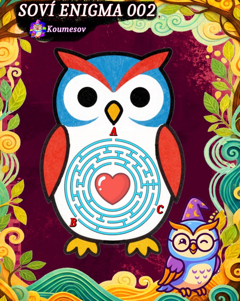Vím, že na monitoru se cesta bludištěm koumá trošku složitěji, ale líbila se mi myšlenka symbolické cesty k sovímu srdci, tak jsem ji zrealizovala. A navíc, toto bludiště je jednoduché jako všechna soví koumání.